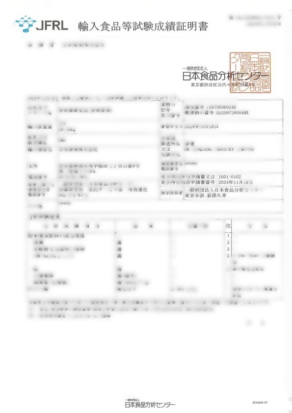 食品の安全性に関して、日本美保株式会社では食品の安全性を証明するため、イギリス、香港、日本での成分分析試験書を皆様に公開しております。安全な食品で美しい体にお役立てください。